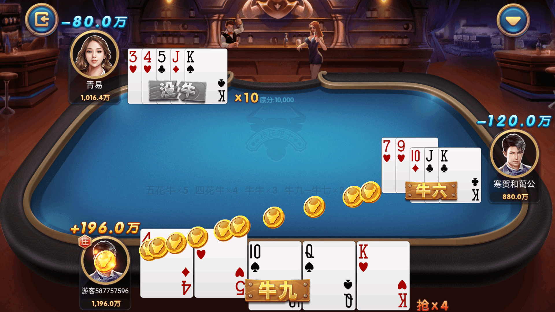 棋牌:通比拼十,抢庄牛牛,二人牛牛,四人牛牛